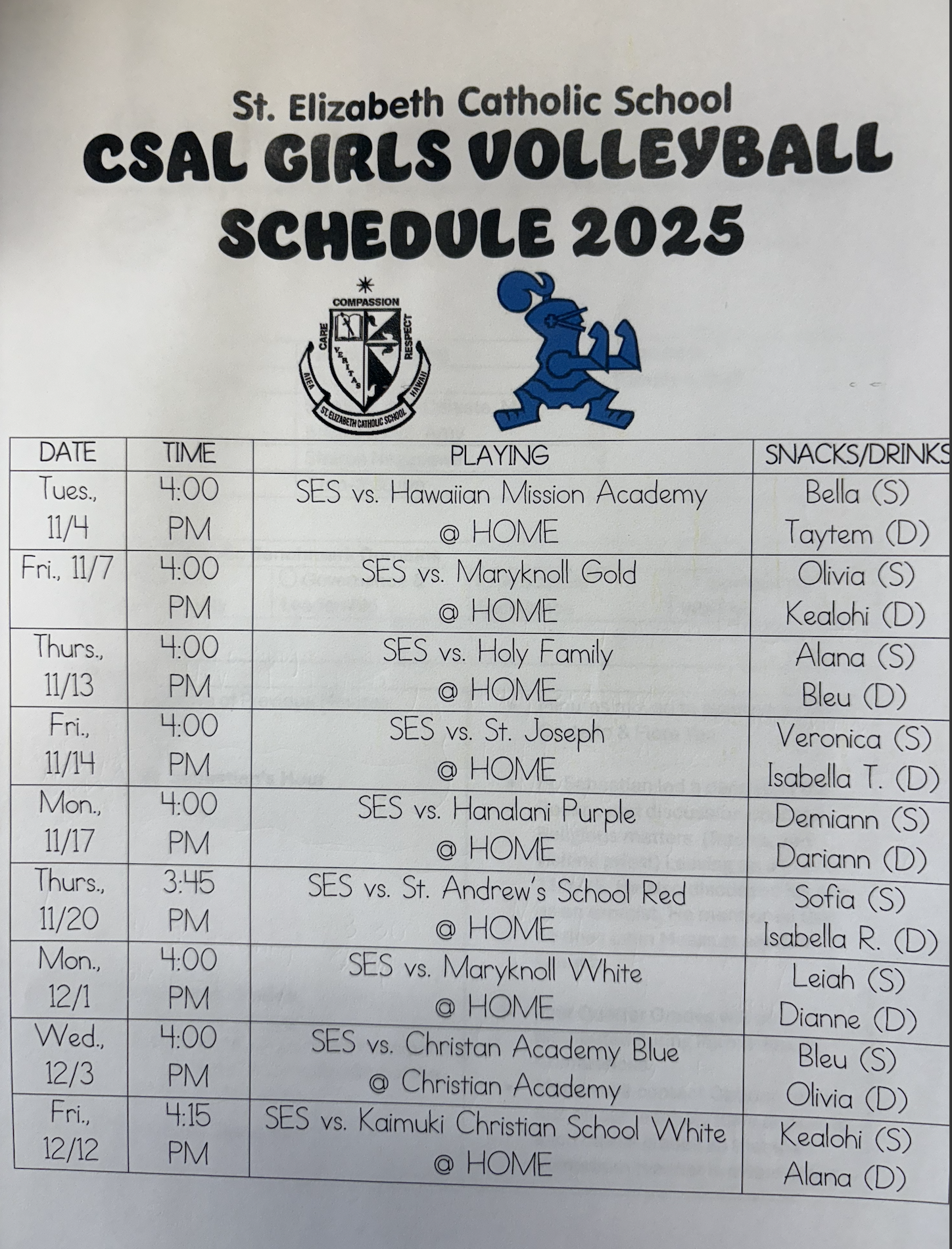 Current Athletic Schedule